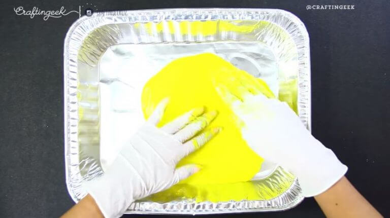 Assim que a mistura estiver pronta, deve ser deixada a secar. Utilizaremos uma bandeja de alumínio na qual esticaremos a massa fazendo uma camada fina, desta forma ela secará antes. É recomendado deixar a bandeja ao sol durante 24 horas.