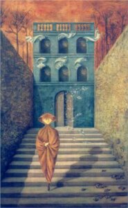 A obra da Remedios Varo é por vezes incluído no surrealismo, mas talvez mais do que surrealista pode, também, identificarse pela fantasia caraterística dos seus quadros: