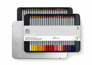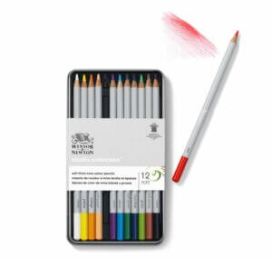 Além dos lápis de cor tradicionais, esta linha Winsor&Newton acrescentou este conjunto de lápis aguareláveis. Tal como os anteriores, os lápis de aguarela são perfeitamente afiados e as suas minas resistem a muita pressão. Estes lápis são extra macios, por isso misturam-se perfeitamente. Podem ser utilizados secos, como lápis de cor normal, ou com um pincel húmido para transformar a sua cor em tinta.