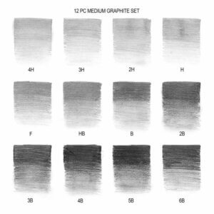Este conjunto está disponível em 6 e 12 lápis, o primeiro inclui: 2H, HB, 2B, 4B, 6B e 8B e o segundo: 4H, 3H, 2H, H, F, HB, B, 2B, 3B, 4B, 5B, 6B. Desta forma é possível alcançar todas as gamas de sombras.