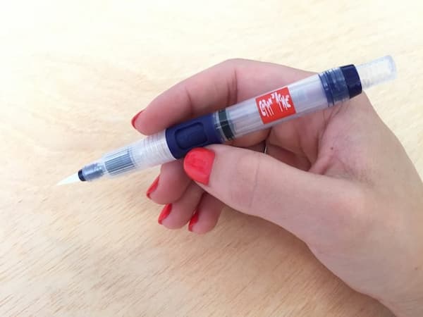 No que poderíamos considerar uma gama «superior» de pincéis recarregáveis encontramos os da marca Derwent. Cuidado em cada detalhe tem pelos suficientemente suaves para serem usados para caligrafia. Além disso, a tampa serve de suporte para o prórpio pincel.