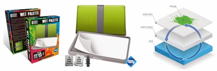 Em geral, os artistas de todas as técnicas usam paletas de pintor para colocar as suas pinturas. No caso dos pintores de miniaturas, estas pinturas podem ser secas. Tem em mente que, ao pintar figuras tão pequenas, utilizam pouca tinta e esta acaba secando na paleta. É por isso que recomendamos que presenteies uma paleta húmida: