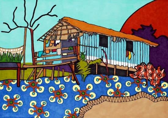 ‘The Fisherman’s House’, ProMarkers no papel, Stephanie Wilkinson.
