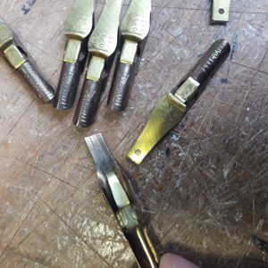 Outros aparos muito importantes são os utilizados para a escrita gótica. Podem ser encontrados em diferentes larguras e são todos ligeiramente biselados.