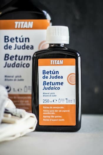 Conhecido como betume judaico, é um corante derivado do petróleo que é diluído com terebintina ou aguarrás. Dependendo do teu gosto, podes encontrar betume líquido em diferentes tamanhos, bem como betume em pó. Em geral, esta tinta preta é usada para dar um toque de envelhecimento em várias superfícies. Como veremos mais adiante, também se pode usar para dar cor. O betume da Judéia se utiliza para diversos usos sobre múltiplas superfícies.