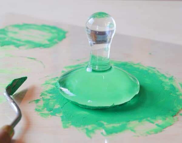 - Moleta de vidro e suporte: a cereja no topo do bolo. Para fabricar uma pintura de qualidade o pigmento deve estar corretamente moído. Para isso, utilizaremos uma moleta de vidro e um suporte rígido não absorvente.