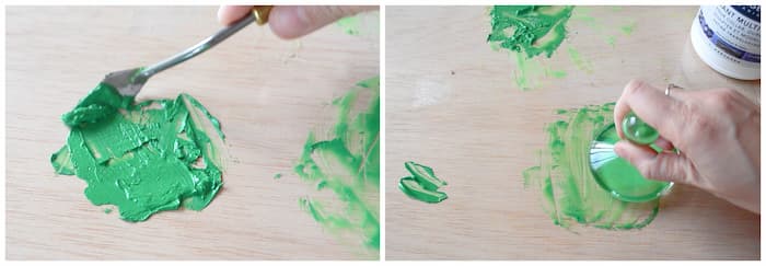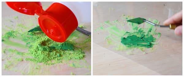 Primeiro prepara um bocado de pigmento e adiciona água pouco a pouco. Com uma espátula trata de misturá-lo e conseguir uma pasta. Às vezes é difícil misturar pigmento e água. Se os pigmentos não forem misturados com água, tenta fazê-lo ao contrário: coloca pigmentos em um recipiente e adicione água lentamente.