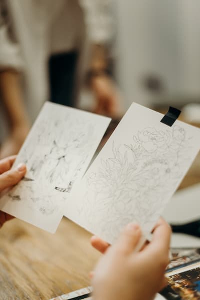 Com o teu quadro de madeira lixado e preparado, faz o esboço. Para isso, recomendamos a utilização de um papel de decalque ou de um papel de decalque fabricado por ti. Se não sabes como fazê-lo, recomendamos que pintes a parte de trás do desenho com um lápis de grafite mole. Depois só tens de colocar o desenho na tua madeira e repassar as linhas como se fosse um papel de decalque!
