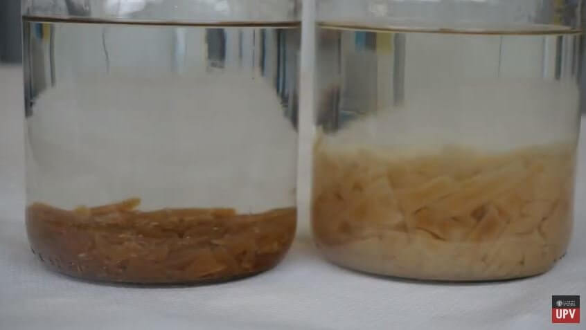Quando a cola de coelho estiver hidratada, diluímo-la em banho-maria, mexendo a mistura e impedindo-a de ferver.