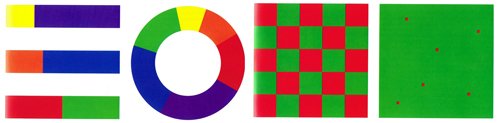 A força de uma cor é definida pela cor e tamanho da mancha. O brilho de uma cor varia em função da mancha que esteja representada na tela.