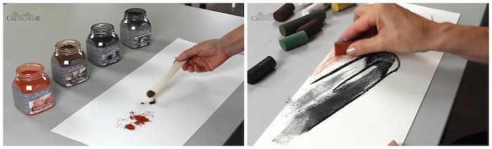 Como se fosse um pigmento refinado, o pó de carvão vegetal de Cretacolor pode ser trabalhado com os dedos, com um pincel, com uma espátula ou com um esfuminho. É o complemento perfeito no desenho ou pintura para aplicar cor a grandes superfícies, especialmente para aquelas em que se pretende fazer algum tipo de claro-escuro.