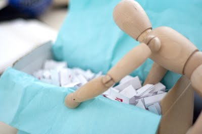 Usa uma pequena caixa e coloca nela pequenos papéis muito bem decorados com palavras soltas de que gostes. Concentra-te em cada uma destas palavras e decora cuidadosamente todos os papéis. Quando terminares a caixa, não a guardes, retira-a e repite o processo sempre que precisares dela.