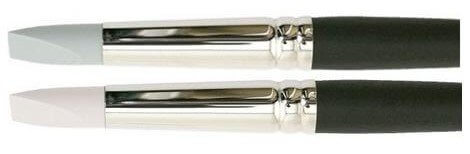 Entre os pincéis mais frequentes e de uso mais diário encontramos duas durezas claramente diferenciadas, uma vez que são dois tipos diferentes de borracha.