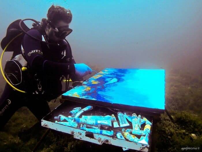 Alfonso Cruz ou Pascual Mimbela são alguns dos nomes que conseguiram distinguir-se no mundo da arte por fazerem algo diferente e que é pintar debaixo de água!